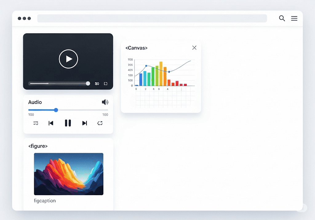 <main>,<nav>,<article>giúp họ dễ dàng “nhảy” đến phần nội dung họ cần, thay vì phải nghe đọc qua hàng loạt thẻ<div>vô nghĩa. - Tích hợp đa phương tiện dễ dàng: Trước đây, việc nhúng video hay audio đòi hỏi các plugin phức tạp như Flash (hiện đã lỗi thời). HTML5 giới thiệu các thẻ