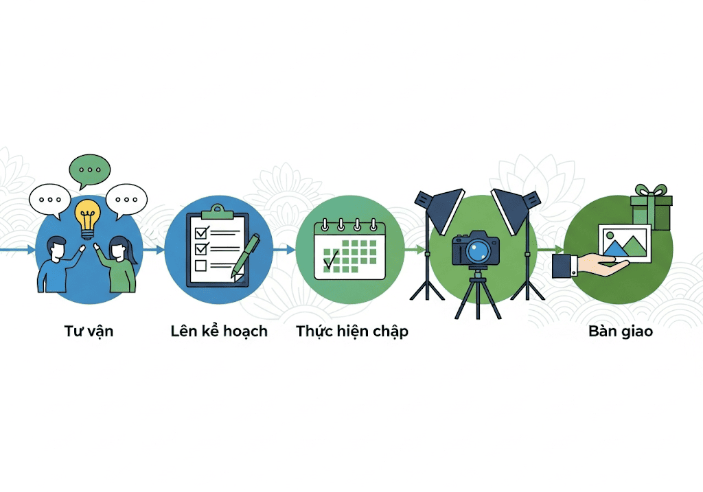 - Giai đoạn 4: Hậu kỳ & Bàn giao (3-5 ngày): Lựa chọn ảnh, chỉnh sửa chuyên sâu, gửi bạn duyệt và bàn giao sản phẩm cuối cùng.