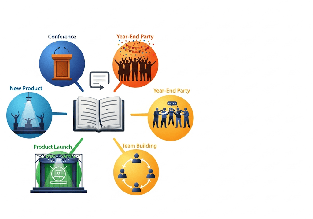 • Loại sự kiện: Tiệc cuối năm (Year End Party), hội thảo khách hàng, lễ khai trương…