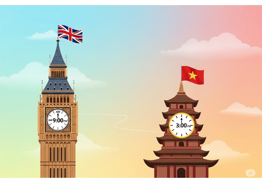 Múi giờ Anh và Việt Nam chênh lệch mấy tiếng?