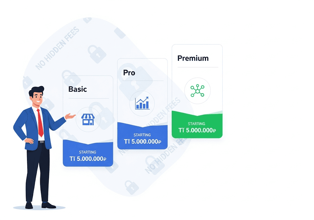 Sau khi đã hiểu rõ quy trình làm việc minh bạch của Tini Tech, chúng tôi biết câu hỏi lớn nhất của bạn lúc này là về ngân sách. Một trong những lo lắng hàng đầu của các chủ doanh nghiệp chính là chi phí làm website mập mờ và các khoản phí ẩn phát sinh. Để giải quyết triệt để nỗi lo này, chúng tôi cung cấp một bảng giá thiết kế web rõ ràng, giúp bạn xem việc mua website bán hàng là một khoản đầu tư thông minh, có thể đo lường được hiệu quả, chứ không phải một khoản chi phí không đáy.