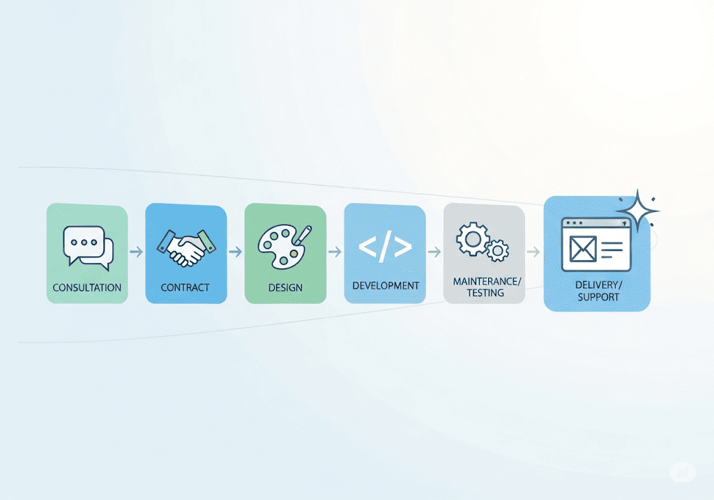 Để loại bỏ hoàn toàn nỗi lo về tiến độ mập mờ và chi phí phát sinh, Tini Tech áp dụng một quy trình thiết kế website gồm 5 bước rõ ràng, đặt sự minh bạch và hiệu quả lên hàng đầu. Chúng tôi tin rằng một dự án thành công bắt đầu từ một lộ trình làm việc chuyên nghiệp, nơi bạn luôn biết chính xác dự án đang ở giai đoạn nào, kết quả nhận được sẽ ra sao và ngân sách được kiểm soát chặt chẽ.