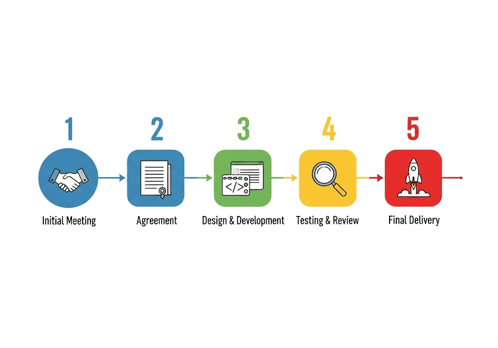 • Tuần 1: Trao đổi chuyên sâu, ký hợp đồng và đội ngũ thiết kế sẽ lên bản demo giao diện (mockup) để bạn duyệt.