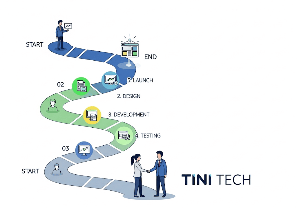 Ví dụ thực tế: Một dự án website cho công ty logistics tại KCN Lộc An – Bình Sơn đã được Tini Tech hoàn thành trong 18 ngày, nhanh hơn 3 ngày so với kế hoạch, nhờ khách hàng đã chuẩn bị sẵn sàng bộ nhận diện thương hiệu và nội dung mô tả dịch vụ chi tiết ngay từ đầu.