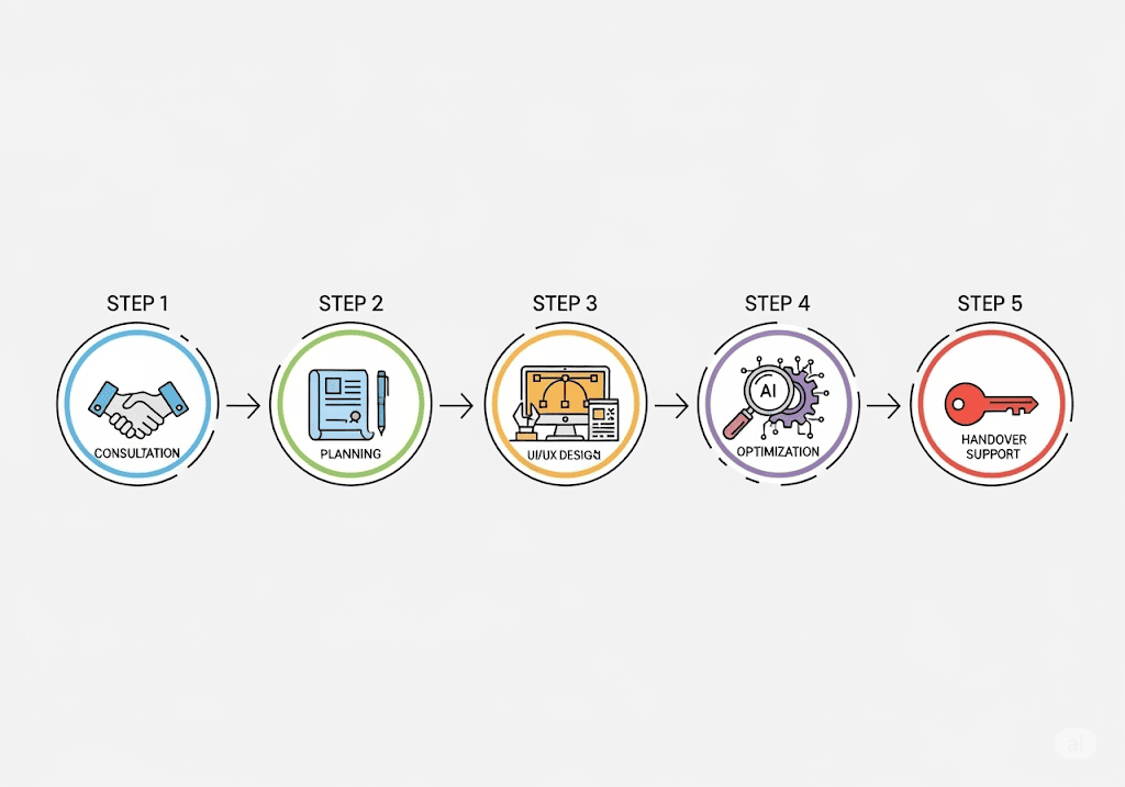 Việc hiểu rõ nhu cầu đặc thù của từng ngành là bước đầu tiên. Nhưng để biến ý tưởng thành một website hoàn chỉnh, bạn cần một quy trình làm việc rõ ràng và chuyên nghiệp, đảm bảo mọi thứ đi đúng hướng và không phát sinh chi phí. Đó chính là điều chúng tôi sẽ chia sẻ trong phần tiếp theo.