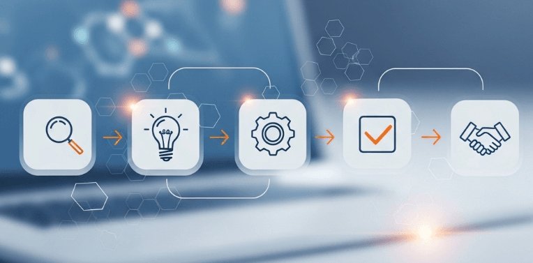 Để tránh những sai lầm tốn kém và đảm bảo dự án đi đúng hướng, chúng tôi áp dụng một quy trình 5 bước minh bạch, giúp bạn kiểm soát mọi giai đoạn và nhận được sản phẩm cuối cùng đúng như kỳ vọng. Quy trình này được thiết kế để tối ưu hóa thời gian và nguồn lực, đảm bảo website không chỉ đẹp về giao diện mà còn hoạt động hiệu quả.