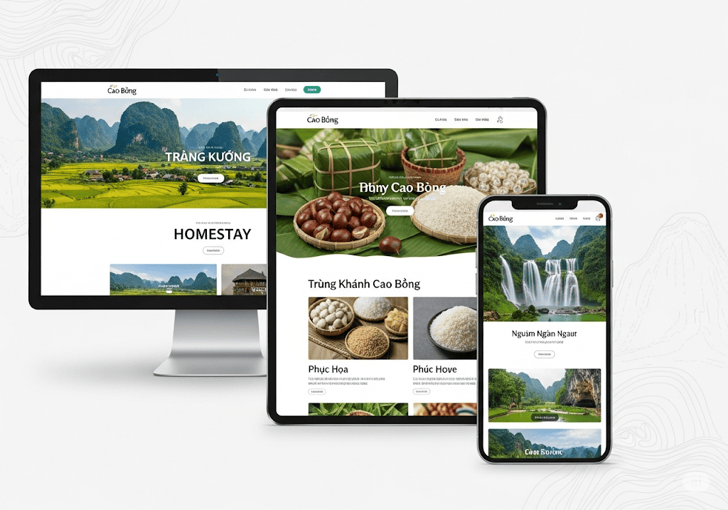 Những case study thiết kế web dưới đây được chúng tôi lựa chọn để thể hiện khả năng giải quyết các bài toán kinh doanh đặc thù của Cao Bằng, từ du lịch, đặc sản cho đến dịch vụ chuyên nghiệp.