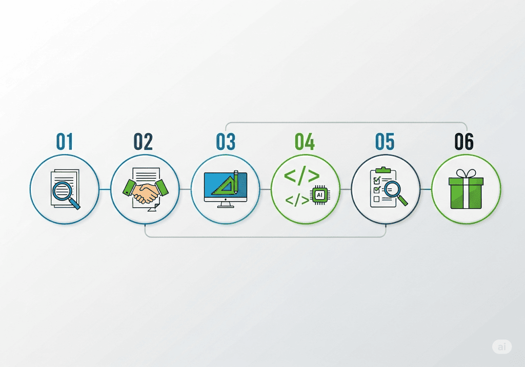 Để đảm bảo ý tưởng của bạn được hiện thực hóa chính xác và không phát sinh chi phí, Tini Tech áp dụng một quy trình thiết kế web 6 bước minh bạch, đặt khách hàng vào vị trí trung tâm. Tại Tini Tech, một quy trình thiết kế web chuyên nghiệp hà nội không chỉ là các bước kỹ thuật, mà là một hành trình hợp tác chặt chẽ để biến tầm nhìn kinh doanh của bạn thành một tài sản số hiệu quả, tránh hoàn toàn rủi ro của các dự án mập mờ, chậm tiến độ và phát sinh chi phí không mong muốn.