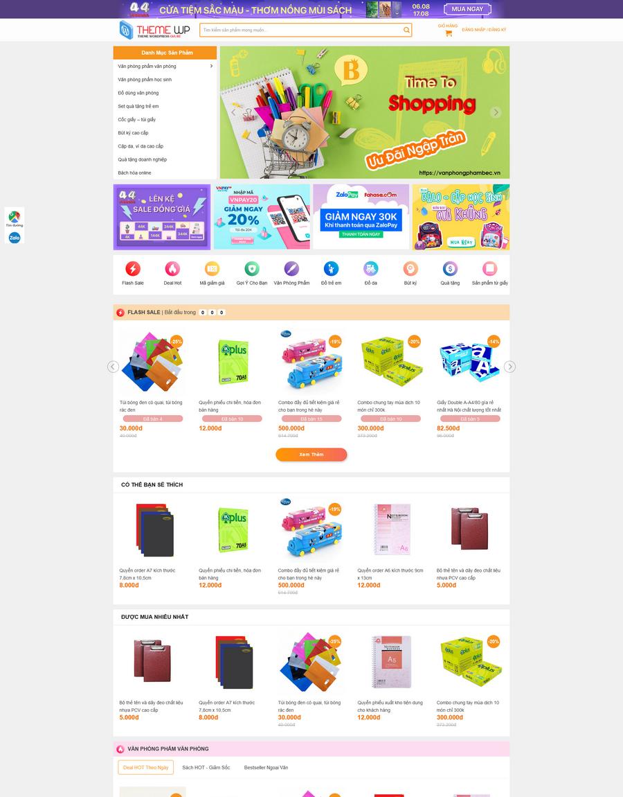 - Menu danh mục sản phẩm thông minh: Giúp khách hàng dễ dàng tìm kiếm và duyệt qua các nhóm sản phẩm (Văn phòng phẩm, Đồ dùng học sinh, Quà tặng…), tiết kiệm thời gian và nâng cao trải nghiệm mua sắm.