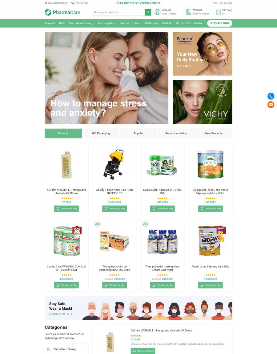 - Nhà thuốc Online, Cửa hàng Dược phẩm: Hiển thị đa dạng các loại thuốc, dược liệu, thiết bị y tế với thông tin chi tiết.