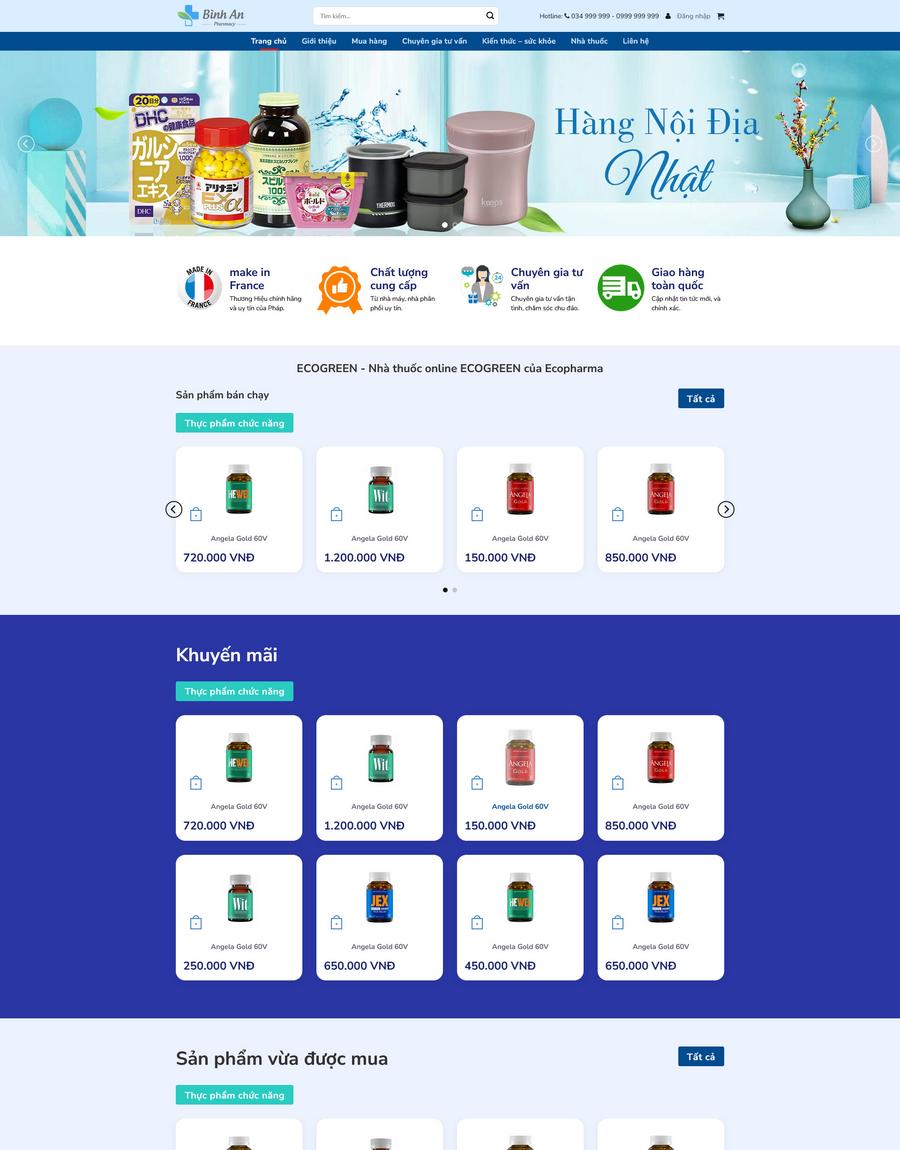 Mẫu Website Dược Phẩm Y Tế Sức Khỏe được thiết kế đặc biệt để đáp ứng mọi nhu cầu của các nhà thuốc, cửa hàng thực phẩm chức năng và doanh nghiệp kinh doanh sản phẩm chăm sóc sức khỏe. Với giao diện tinh tế, hiện đại và tính năng mạnh mẽ, Mẫu Website Dược Phẩm Y Tế Sức Khỏe giúp bạn xây dựng một không gian mua sắm trực tuyến đáng tin cậy, nơi khách hàng có thể dễ dàng tìm kiếm, tìm hiểu và mua sắm các sản phẩm cần thiết cho sức khỏe của mình và gia đình.