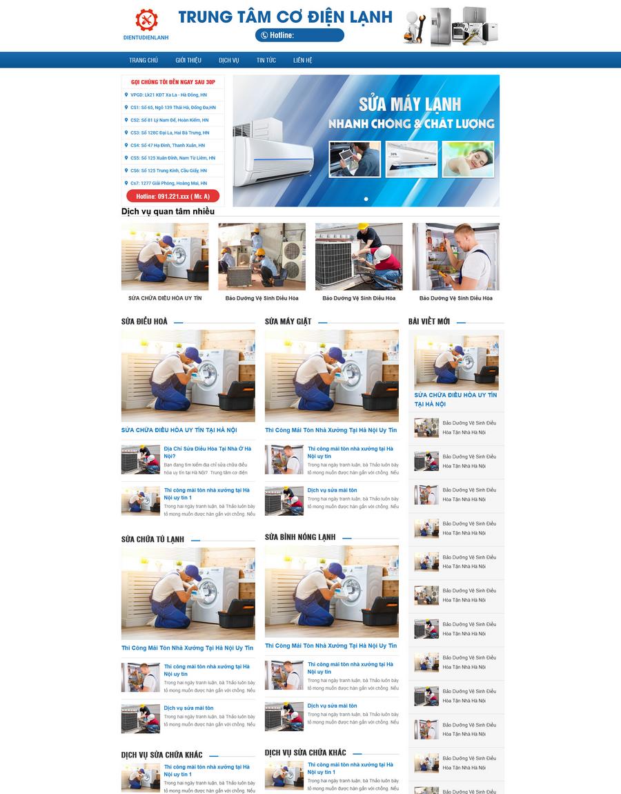 Nâng tầm trung tâm điện lạnh của bạn với mẫu website chuyên nghiệp, hiện đại này. Được thiết kế đặc biệt cho các dịch vụ sửa chữa, bảo dưỡng điều hòa, tủ lạnh, máy giặt và các thiết bị điện gia dụng khác, mẫu website này sẽ giúp bạn tiếp cận khách hàng tiềm năng một cách hiệu quả nhất, thể hiện sự chuyên nghiệp và đáng tin cậy.